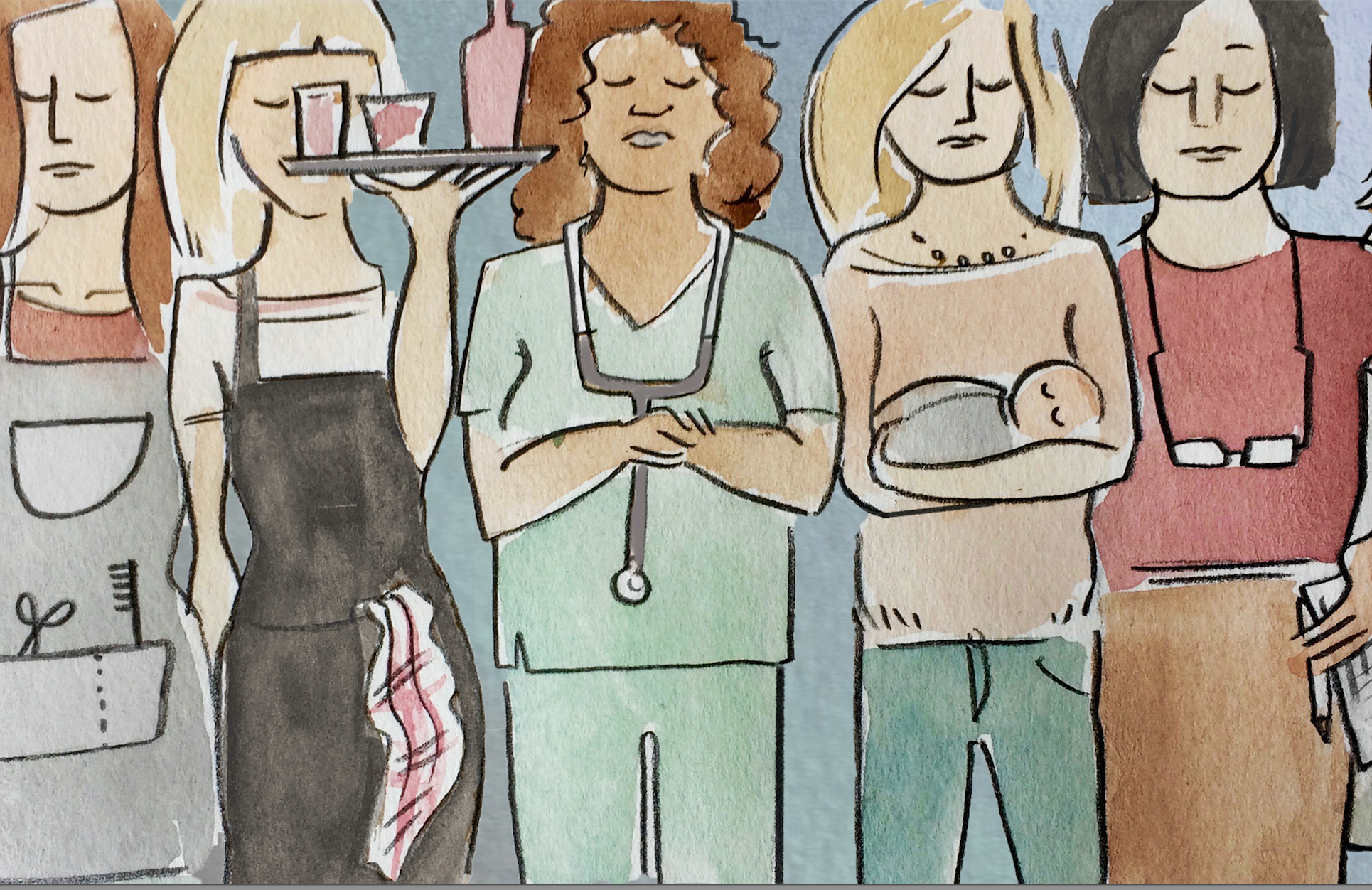 The jobs in our society that focus on caring for others are often held by women. Women hold 70% of teaching jobs, 90% of nurses are female, social workers, childcare,