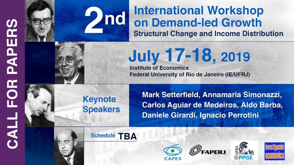 For more information about the Workshop check out: http://www.ie.ufrj.br/index.php/listar-destaques/eventos/2nd-international-workshop-on-demand-led-growth-structural-change-and-income-distribution-july-17-18-2019
