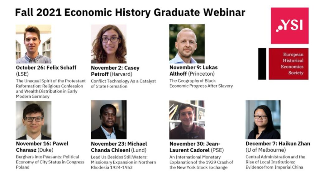 We are pleased to announce the new series of the Economic History Graduate Webinar with support from the European Historical Economics Society (EHES)!