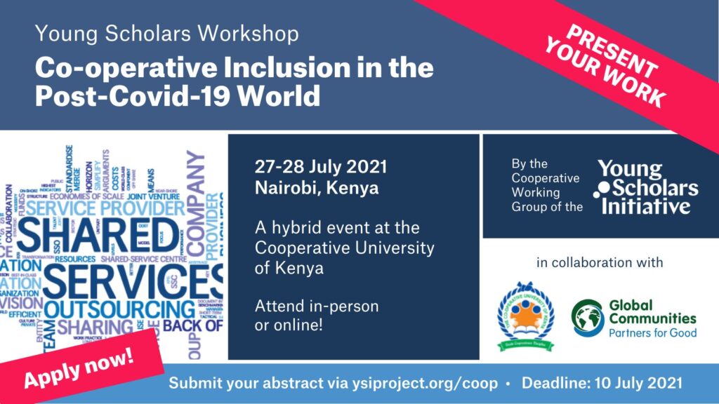 We are now 5 days away from the deadline for the Call for Papers for ‘Co-operative Inclusion; Post-Covid-19 World’, a workshop organized by the Young Scholars Initiative Cooperative Working Group of the Institute of New Economic Thinking in collaboration with Global Communities – USAID CLEAR program and the Co-operative University of Kenya. Visit ysiproject.org/coop to submit your abstracts.