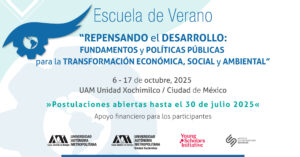 We are pleased to invite applications for the 2025 edition of the Summer School “Rethinking Development: Foundations and Public Policies for Economic, Social, and Environmental Transformation” , jointly organized by the Universidad Autónoma Metropolitana (UAM) and UAM-Xochimilco, in collaboration with the Sant’Anna School of Advanced Studies (Pisa), the Institute for Social Research (IIS, UNAM), and with the support of Open Society and the Young Scholars Initiative.