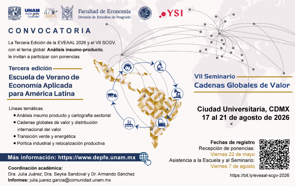 Escuela de Verano de EconomÃa Aplicada para América Latina (EVEAAL) 2026  Tercera Edición Análisis Insumo-Producto VII Seminario de Cadenas Globales de Valor Presentación General En el proceso contemporáneo de […]